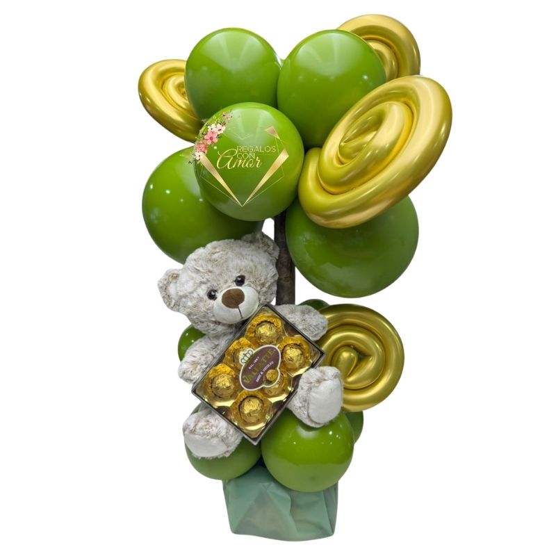 Arreglo de Nacimiento con Globos, Bombones de 75grs y Peluche 30cm
