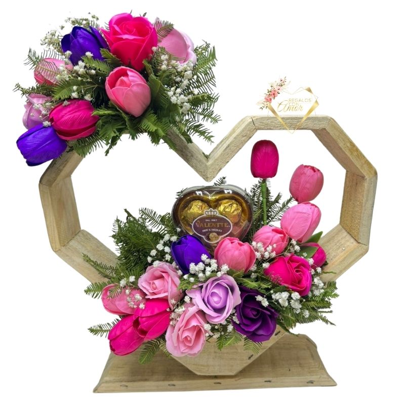 Arreglo Especial Corazón Flores Eternas y Bombones