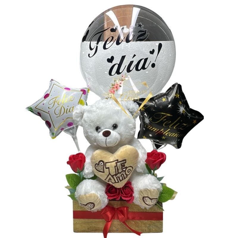 Base con Peluche, Rosas Eternas y Globos