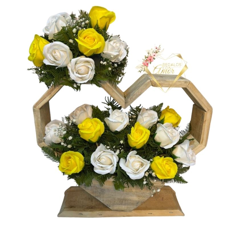 Base Corazón Condolencias de Rosas Eternas Blancas y Girasoles
