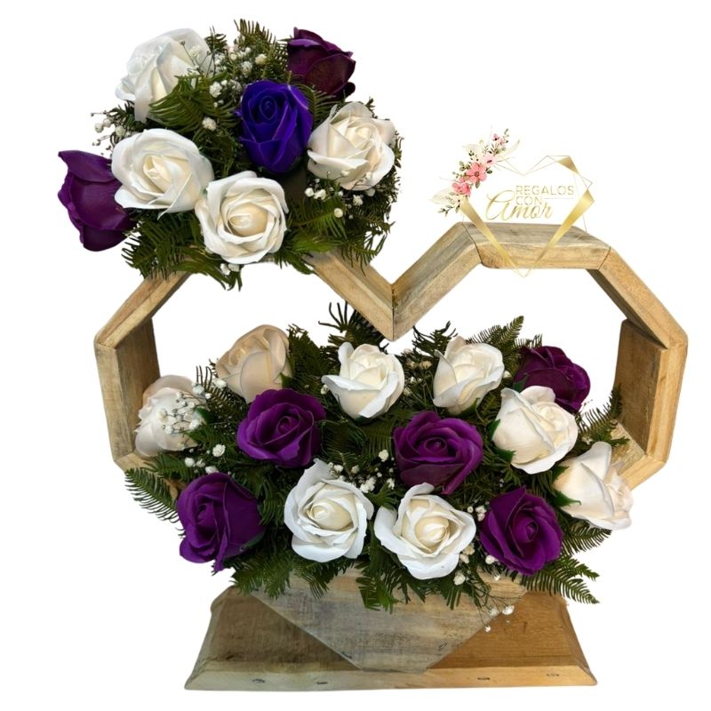 Base Corazón Condolencias de Rosas Eternas Blancas y Moradas