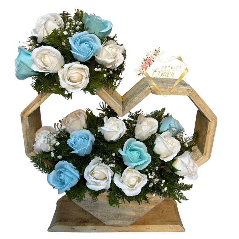 Base Corazón de Rosas Eternas Blancas y Celestes