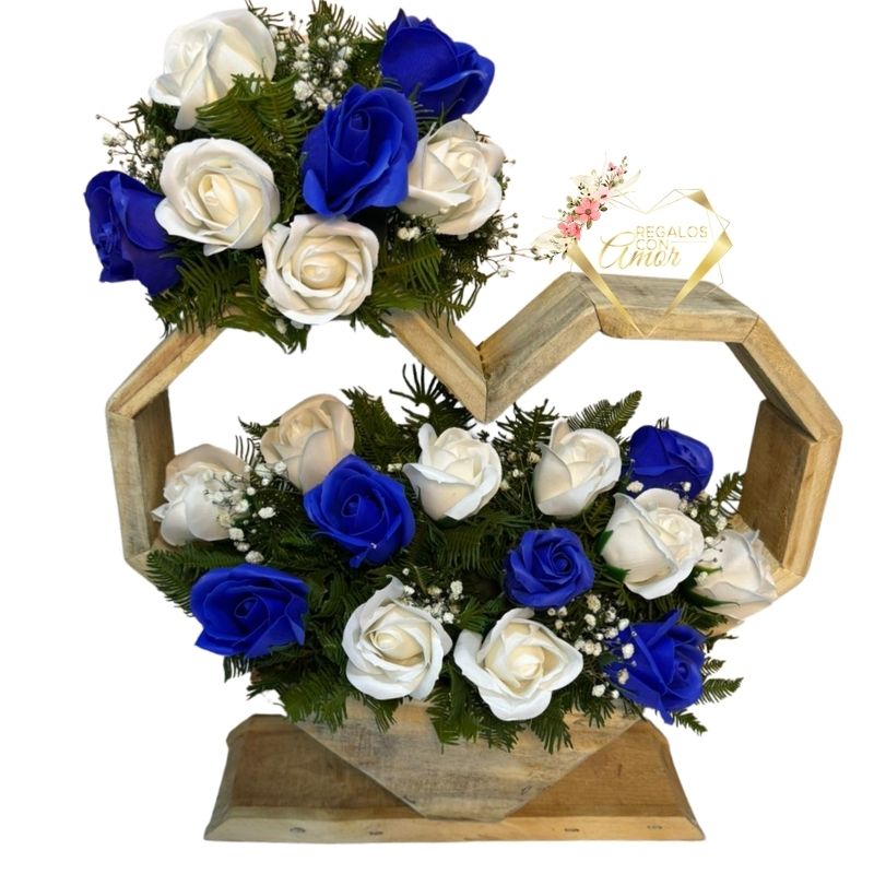 Base Corazón Fúnebre de Rosas Eternas Blancas y Azules