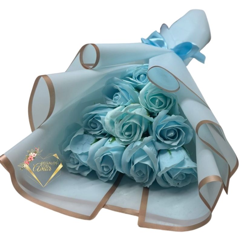 Bouquet de 10 Rosas Eternas Celeste