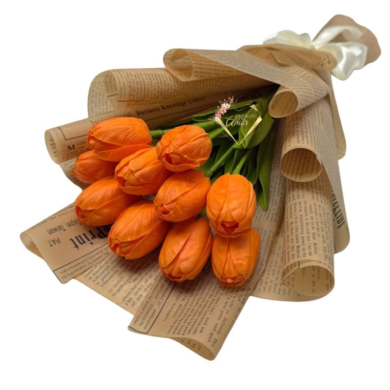 Bouquet de 10 Tulipanes Eternos Naranjas