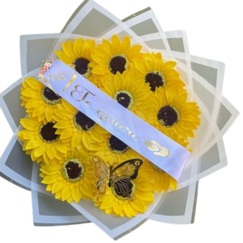 Bouquet de 15 Girasoles Eternos y Cinta Personalizada
