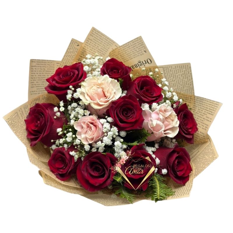 Bouquet de 9 Rosas Rojas y 3 Rosas Rosadas