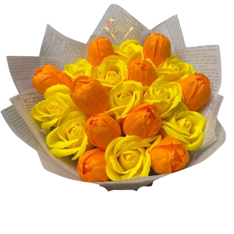 Bouquet de Rosas y Tulipanes Eternos Amarillo Naranja