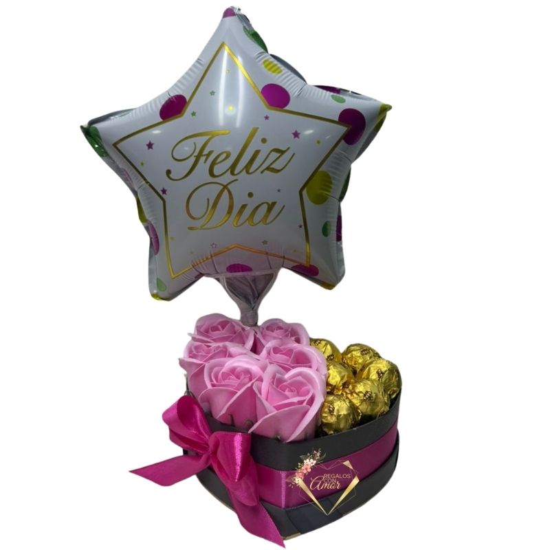Box Corazón Rosas Eternas, Bombones y Globito