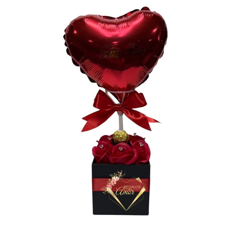 Box Cuadrado de Rosas Eternas, Bombones y Globito Corazón