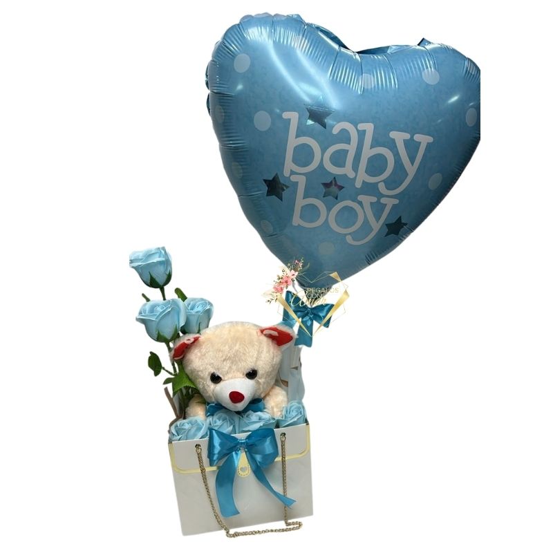 Cartera de Nacimiento con Rosas Eternas, Osito y Globo