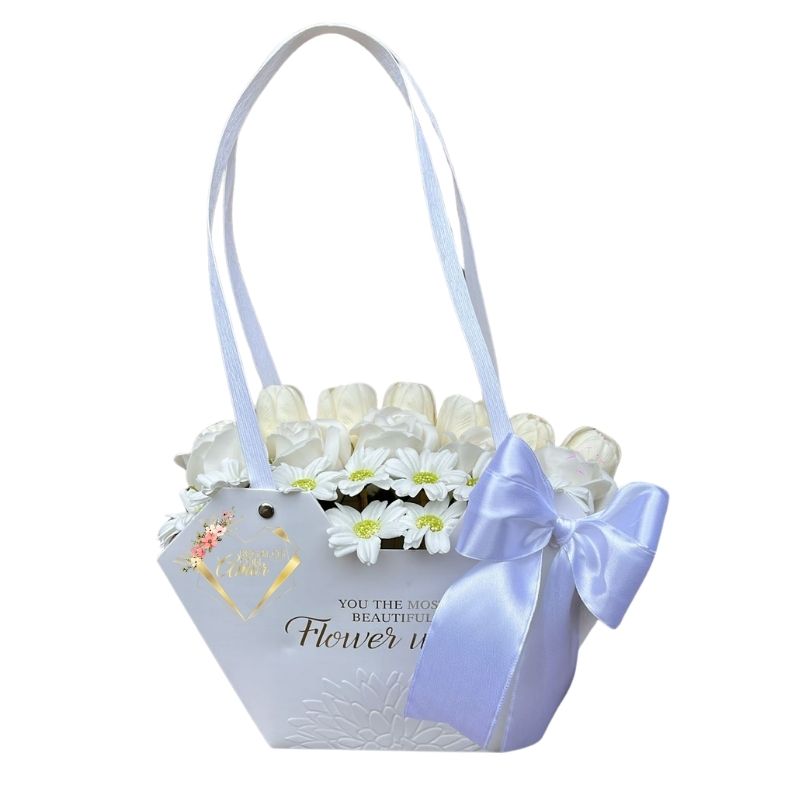 Cartera Hexagonal de Flores Blancas Eternas