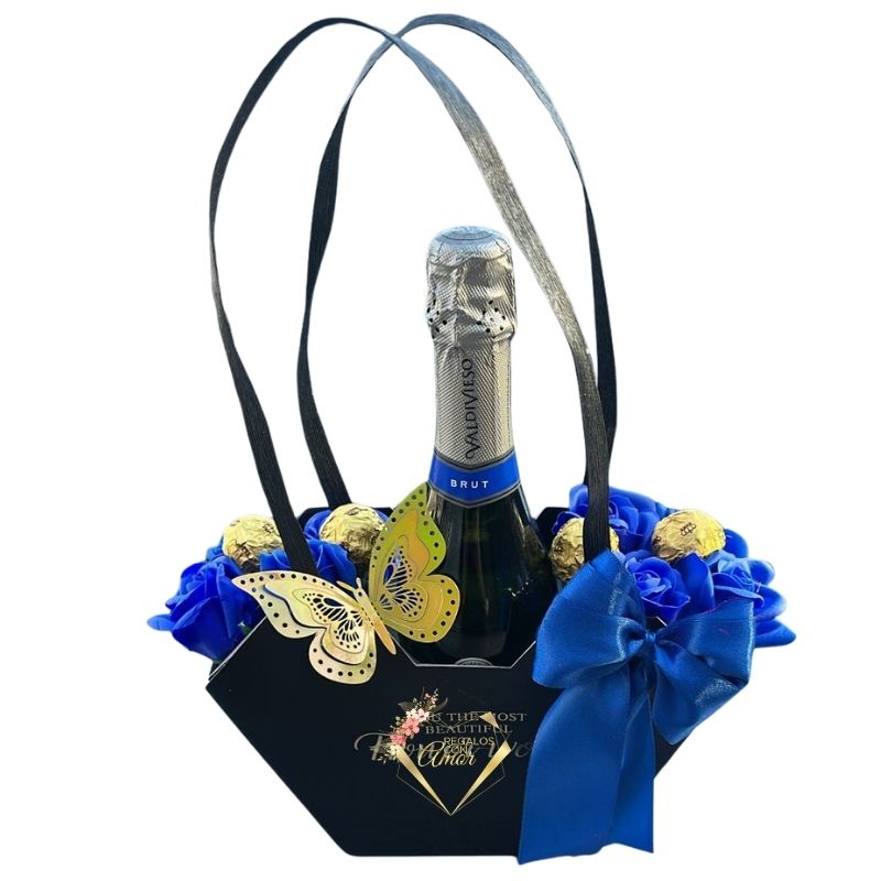 Cartera Hexagonal de Rosas Eternas, Espumante y Bombones