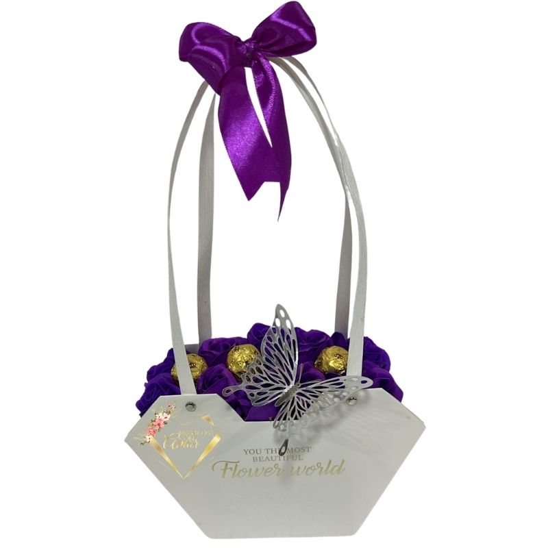 Cartera Hexagonal de Rosas Moradas Eternas y Bombones