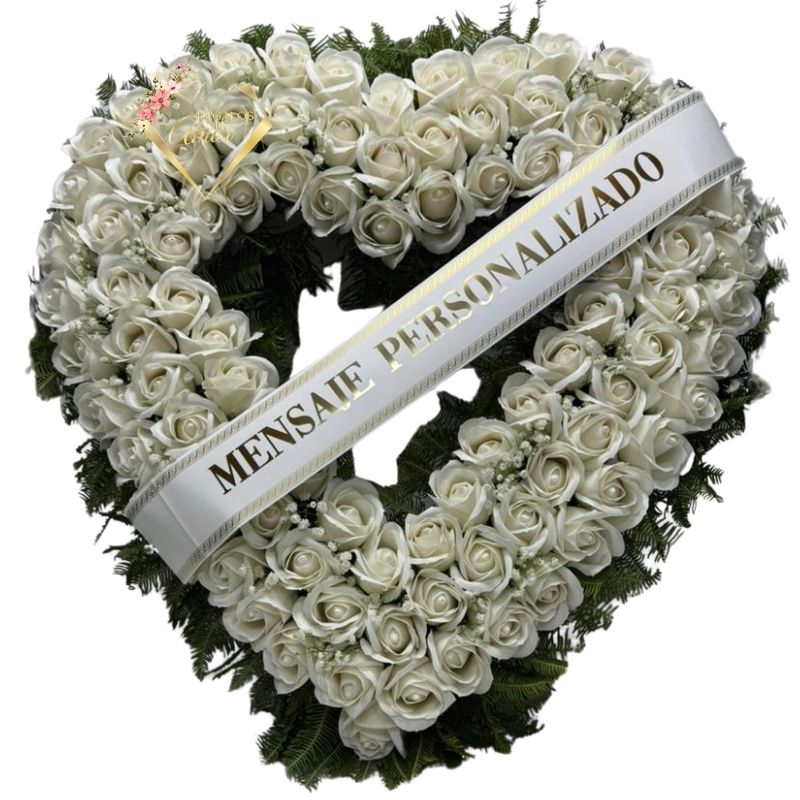 Corona Corazón de Condolencias de 100 Rosas Eternas, Cinta Personalizada y Atril