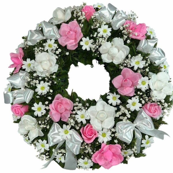Corona Mediana de Rosas Eternas Blancas y Rosadas con Atril
