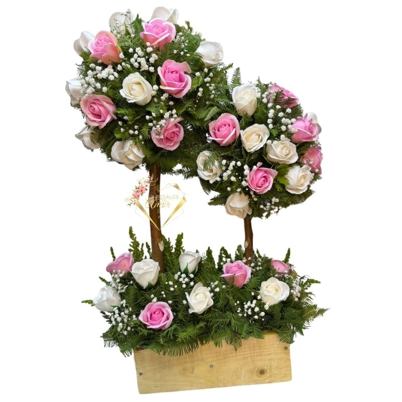 Doble Árbol de Condolencias con Rosas Eternas Blancas y Rosadas