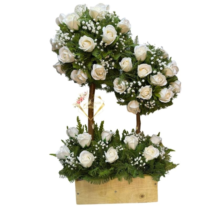 Doble Árbol de Condolencias con Rosas Eternas Blancas