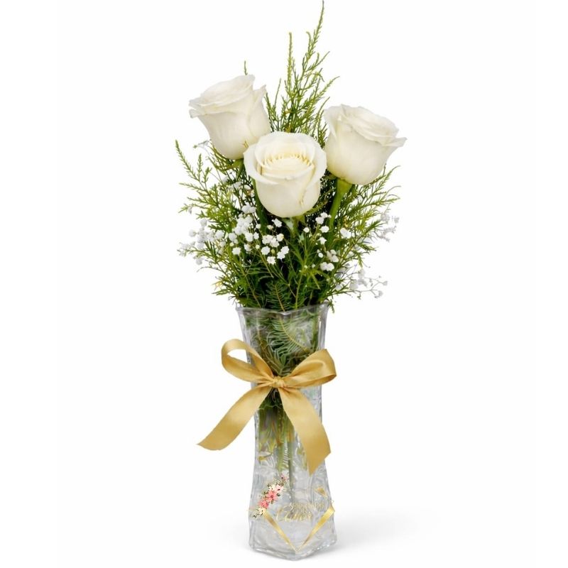 Florero con 3 Rosas Blancas