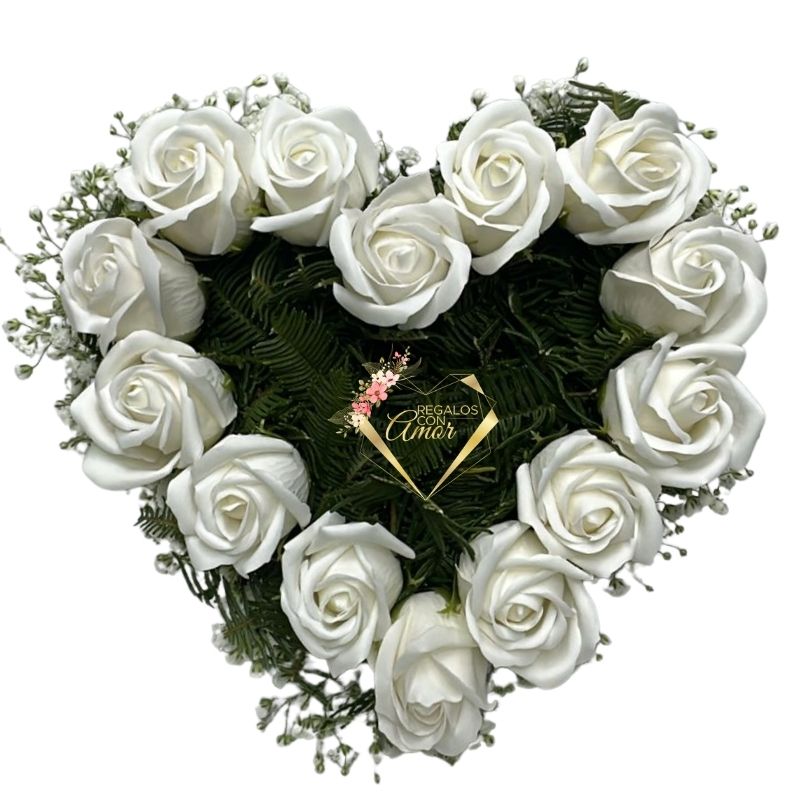 Mini Corazón de Condolencias Rosas Blancas Eternas