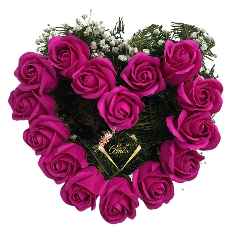 Mini Corazón de Condolencias Rosas Fucsias Eternas