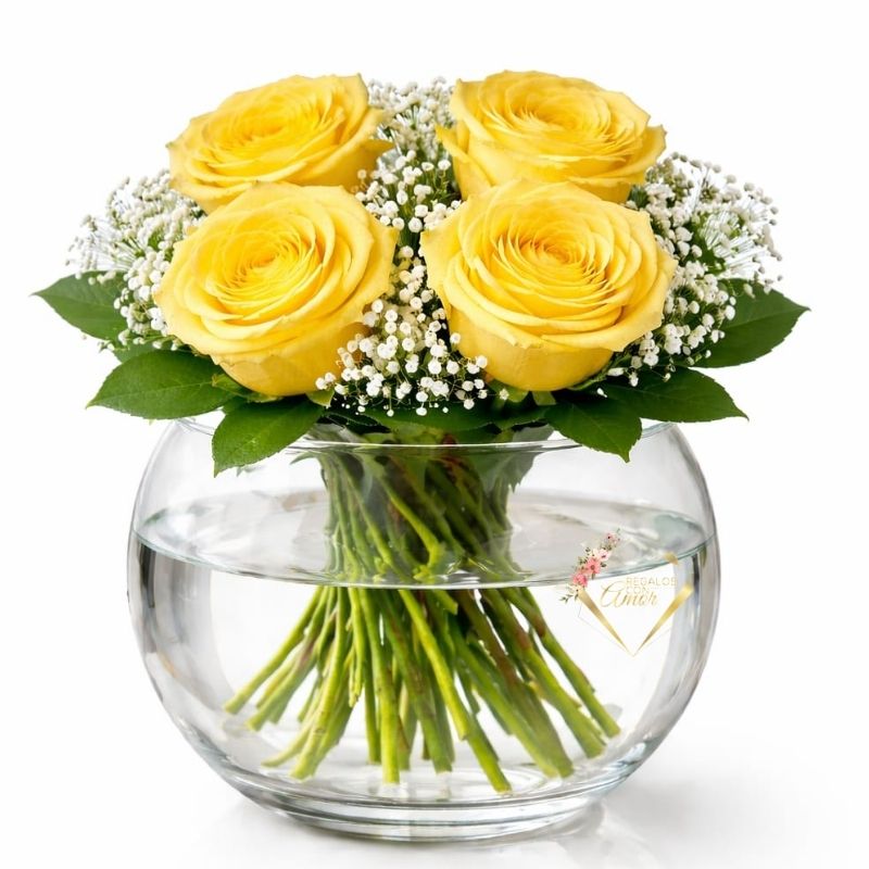 Pecera de 4 Rosas Amarillas