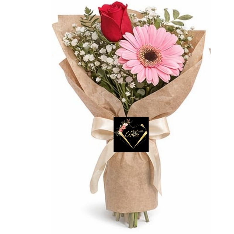 Ramo de 1 Rosa Roja y 1 Gerbera