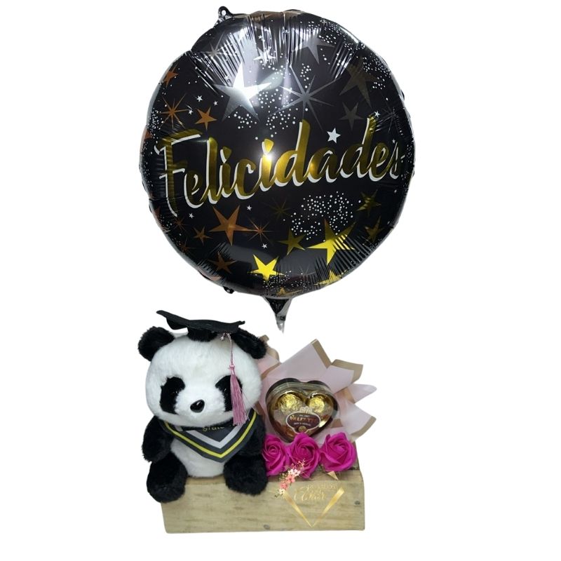 Regalo de Graduación Rosas eternas, Bombones, Peluchito y Globo