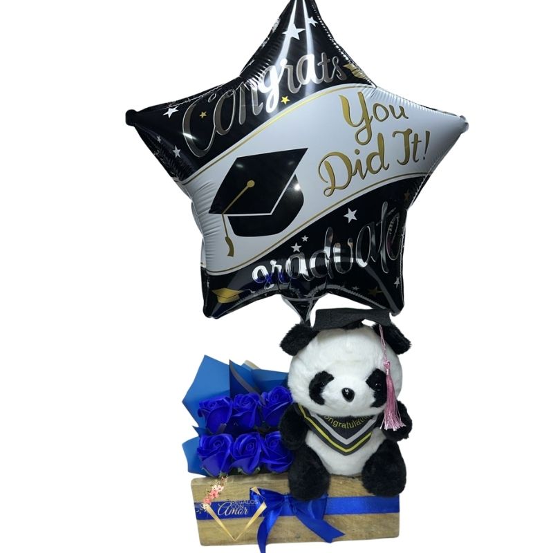 Regalo de Graduación Rosas eternas, Peluchito y Globo