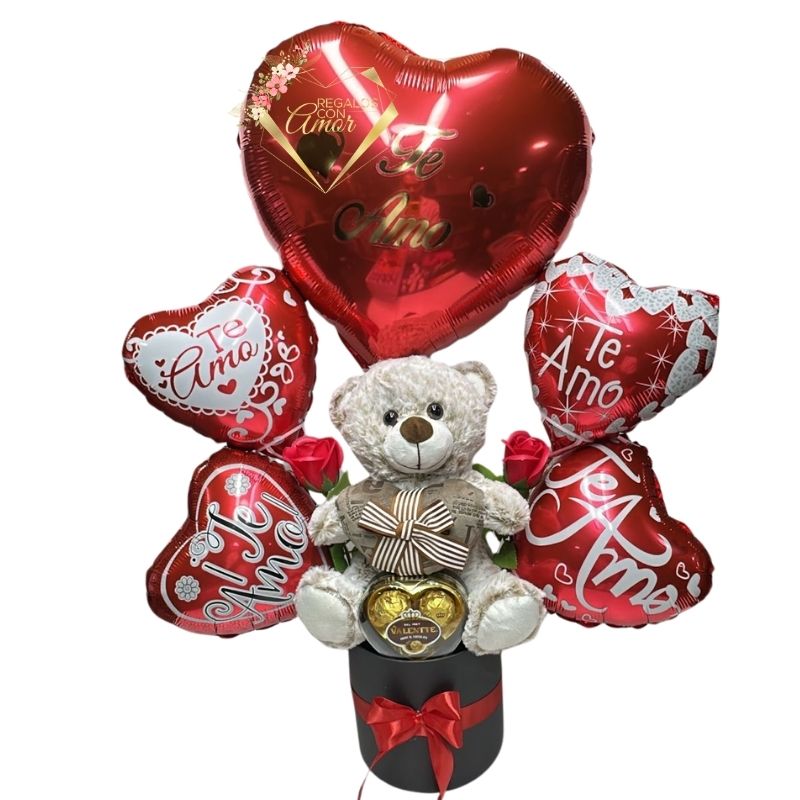 Regalo enamorados Peluche, Rosas Eternas, Bombones y Globos